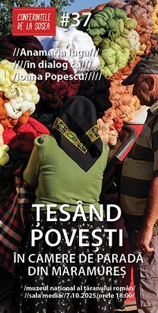 CONFERINȚELE DE LA ȘOSEA: Anamaria Iuga în dialog cu Ioana Popescu despre volumul Țesând povești. Istorii de viață în camera bună maramureșeană, marți, 7 octombrie, la Muzeul Național al Țăranului Român