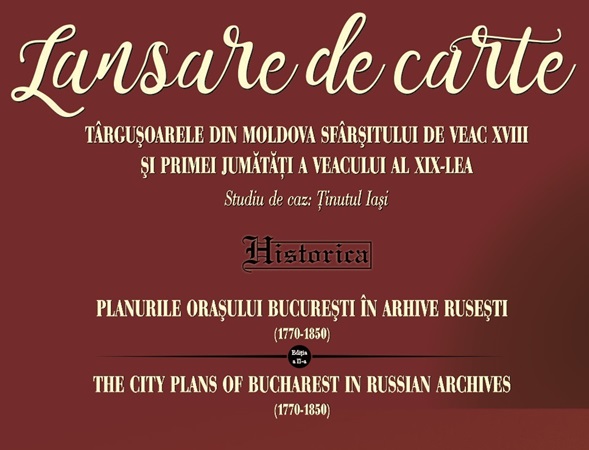 Editura UAIC vă invită luni, 20 octombrie 2025, ora 12.00, la Librăria OREST TAFRALI (Universitatea „Alexandru Ioan Cuza” din Iași, corp A, parter), unde va avea loc lansarea volumelor Târgușoarele din Moldova (1774-1859). Studiu de caz: ținutul Iași, de Andrei Melinte, și Planurile orașului București în arhive rusești (1770-1850) /